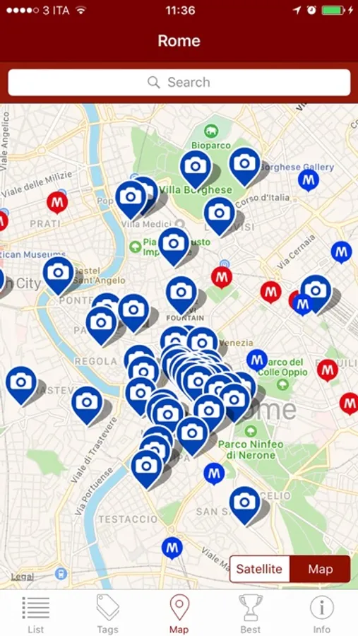 Beautiful maps each featuring several POIs with audio tracks that will let you discover the many not-to-be-missed sites of Rome as well as legends of the city.