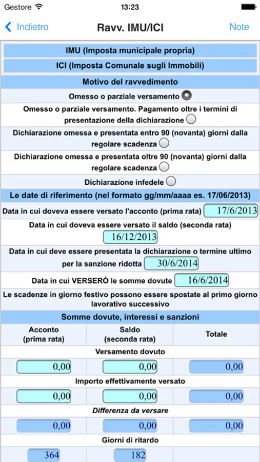 • RAVVEDIMENTO IMU/ICI: Consente di determinare l'importo degli interessi e delle sanzioni ridotte per regolarizzare omessi o tardivi versamenti relativi all'acconto e al saldo dell'imposta municipale propria e dell'imposta comunale sugli immobili;