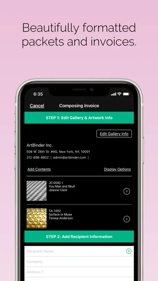 The ArtBinder app allows you to manage your inventory right from your iPhone or iPad.