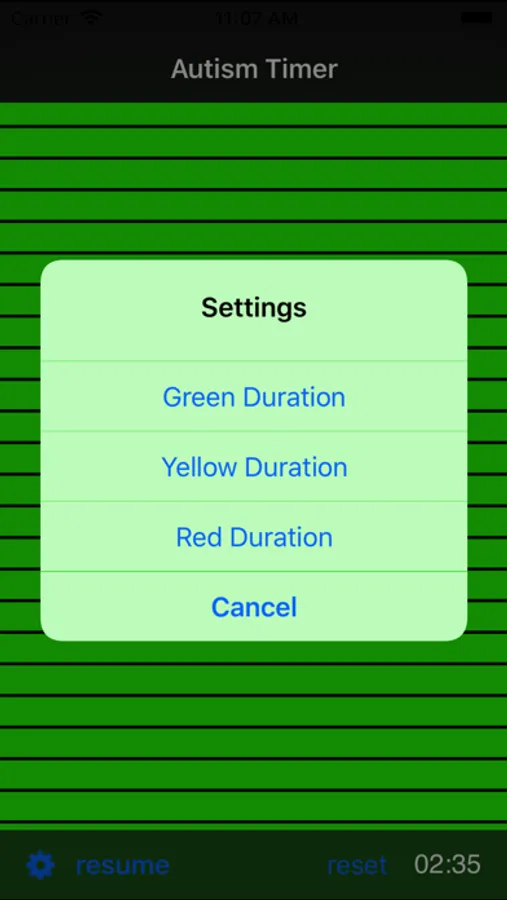 Autism Timer is a digital timer that shows the elapsed time clearly and is easy to use. You can set three different time for green/yellow/red zone. When the timer is done, it beeps/vibrate and show the black and white square flag. It uses the full screen of the iPhone/iPod touch without any additional clutter while running.