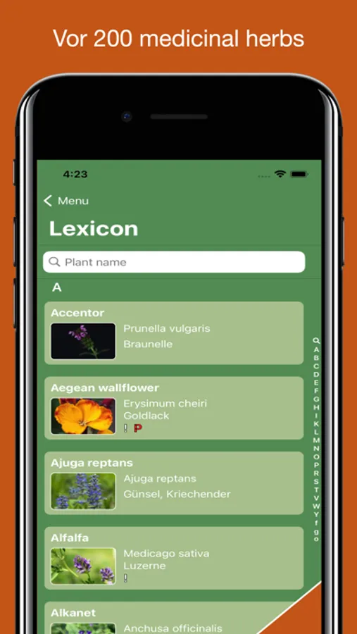 With over 250 entries on medicinal plants as well as 149 symptoms, the Medicinal Herbs Encyclopedia offers a comprehensive and user-friendly reference work on natural plants and their healing effects. The individual potentials for actively improving one’s own health can be derived from the detailed descriptions of the individual plants (alternative name, plant family, appearance, active ingredient, lifespan, occurrence, collection period) as well as the healing effects, areas of application, vaporizer temperatures and preparation methods. Pictures and videos are available for viewing and better comprehensibility. Since we often also seek help from Mother Nature in the case of concrete complaints and symptoms, the appropriate medicinal herbs and recipes are also assigned and found in this causal search logic.