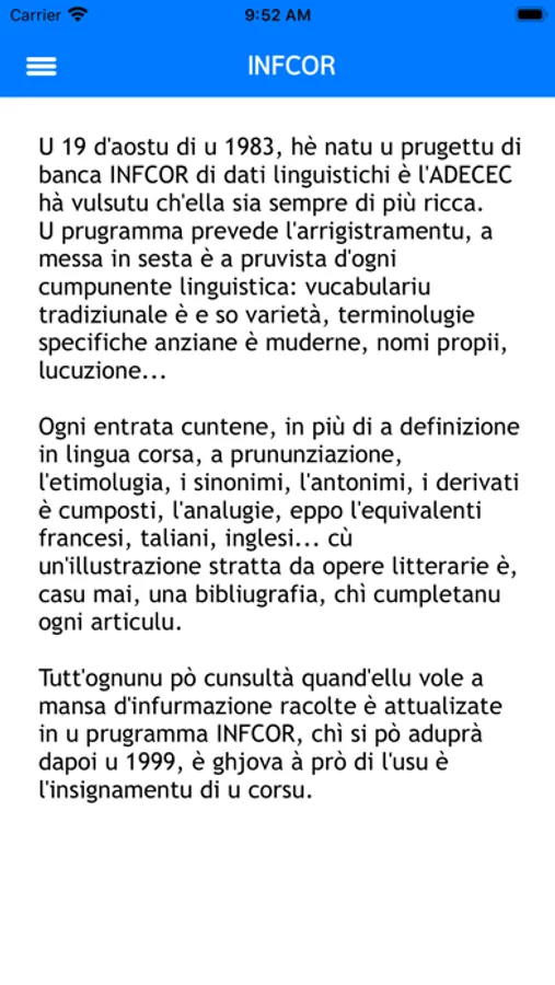 C'est donc dans ce cadre qu'elle propose, via cette application, la possibilité d'accéder à la banque de données corse INFCOR dans une version dédiée aux appareils iOS. La version dédiée aux machines de bureau est accessible à l'adresse suivante : https://infcor.adecec.net.