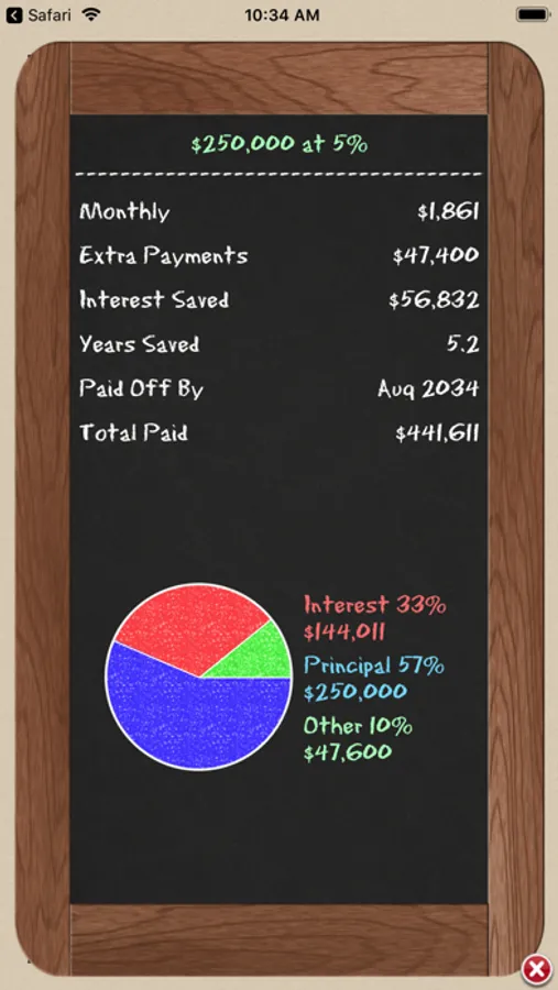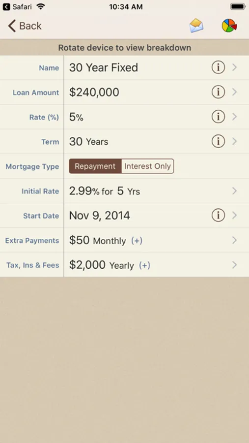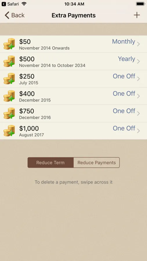Try out various 'What-If' scenarios and quickly see how extra payments can save you a whole lot of time and money. You can enter any number of Monthly, Yearly or One Off extra payments, at any period during the loan. Then watch the total loan length and cost go down. You may be surprised by just how much!