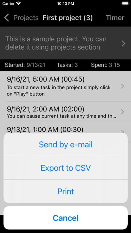 - you can export all tasks from project(s) to the file using CSV or Excel format