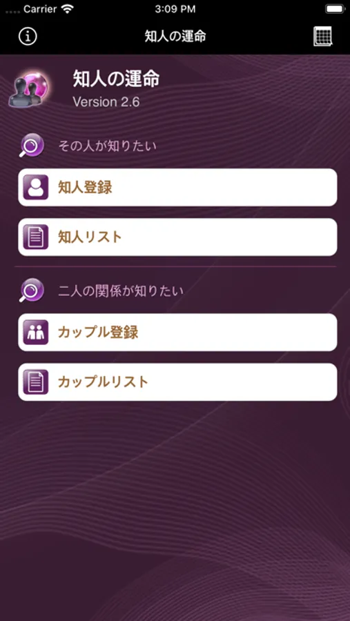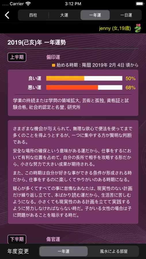 知人の運命は自分と自分の周りの人々との運命, 適性, 縁, 一生運, 一年運, 相性を制限なしに見られる四柱推命占いアプリです.