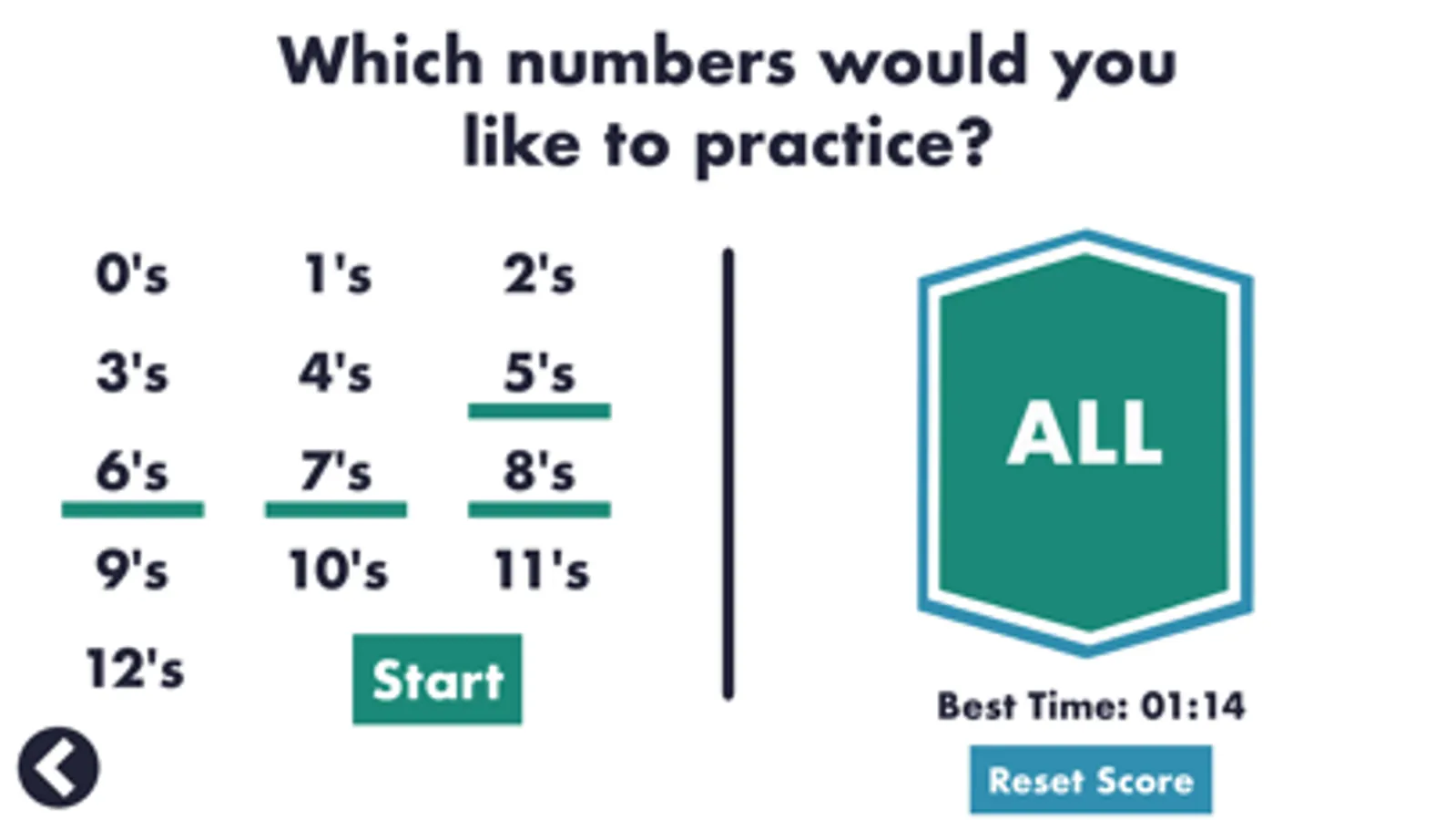 - Single number focus: practice your times table for 3's, 5's, 8's, or the number of your choice.