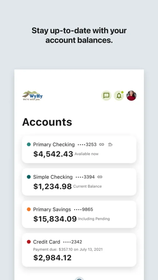 WyHy Mobile Banking allows you to apply for a loan, check balances, view transaction history, transfer funds, deposit checks and pay your bills on the go!
