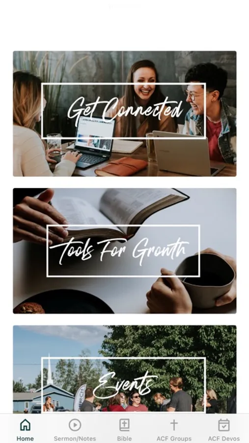 With our app, you can listen to sermons, use the Bible feature for daily reading or follow along in church, download sermon notes, watch current video announcements, connect with an ACF Group, and so much more.