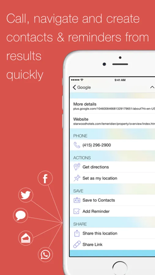 • Share your findings with your friends using Messages, Email, Facebook, Twitter, WhatsApp or Sina Weibo