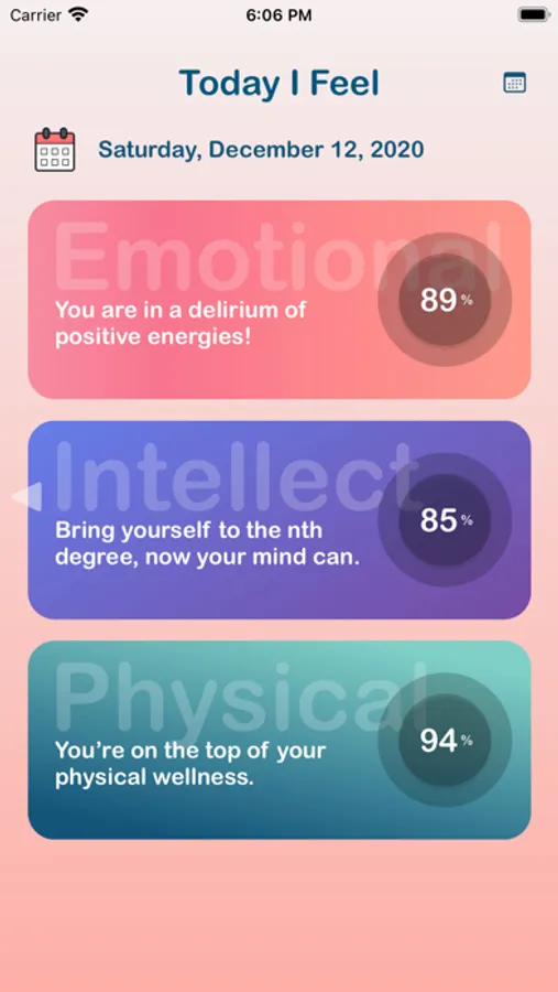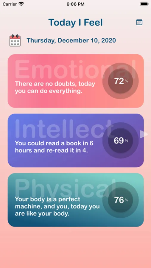 The magic of words expertly mixed with the complex maths on your natural biorhythms, will give you multiple combinations of answers with more than 300 different phrases and variables.