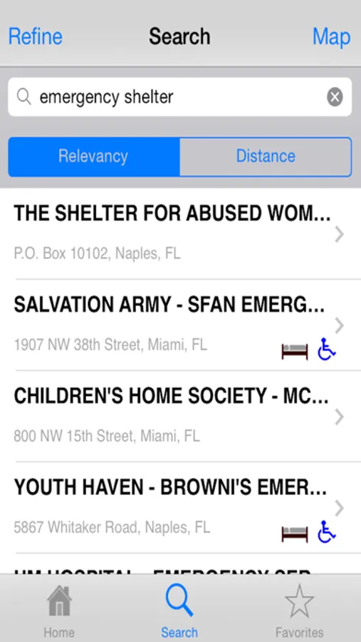 + Quickly identify from the search results which Resources are handicap accessible and shelters.