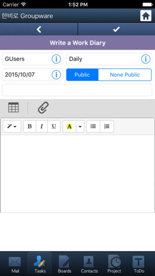 With ToDo you can manage your things to do or share with your colleagues by allowing to read or granting this function for giving tasks to other.