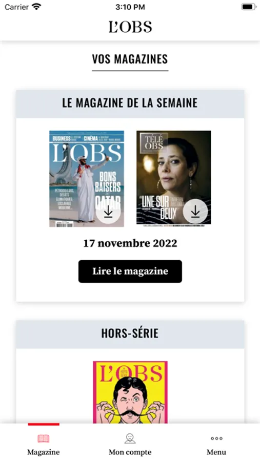 Cette application est la liseuse numérique du magazine L’Obs. Retrouvez L’Obs, ses suppléments et ses hors-séries directement dans votre application mobile. Téléchargez-la dès maintenant pour bénéficier de tous vos avantages abonnés où que vous soyez !