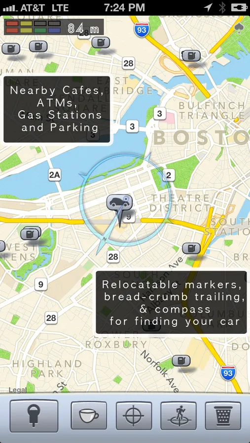 Honk also sports the widely praised "minute-by-minute" display of remaining time on the meter on its Icon badge. It even helps you locate nearby ATMs, cafes, Parking garages and, gas stations.