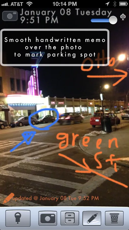 - Smooth handwritten memo/photo/voice memo to mark the parking spot.