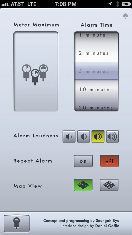 - Simplest interface to set the parking meter alarm. A single swipe for most situations!