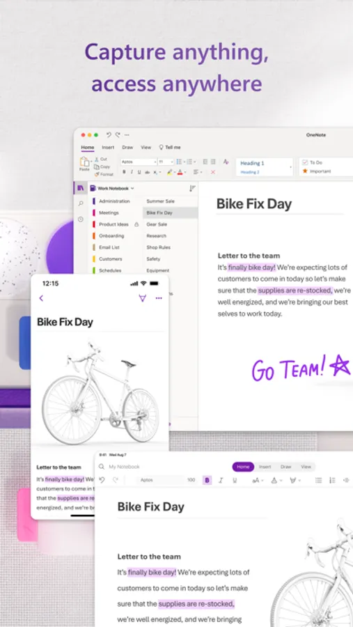 Sync your notes via OneDrive to access them anytime, anywhere. Whether you're at home, in the office, or on the go, your notes are available to you across all of your devices.