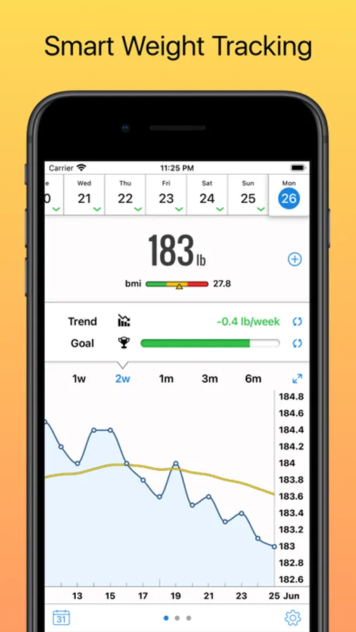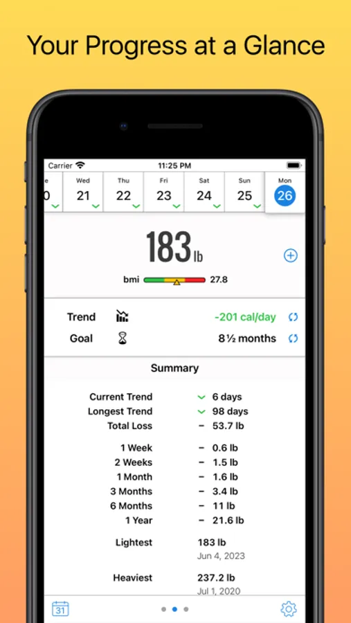 Simply enter your daily weight and let Weight Diary estimate your progress and how long it will take to reach your goal. No guesswork or calorie counting required.