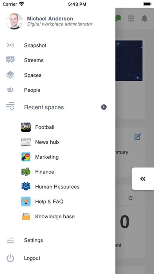 eXo Platform’s mobile app can be easily connected to your organization's private and personalized installation of eXo Platform. Based on a simple and intuitive design, the app allows your teams to access their digital workplace wherever they are, be notified about important things through push notifications, and access all of the platform’s features.