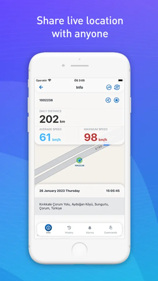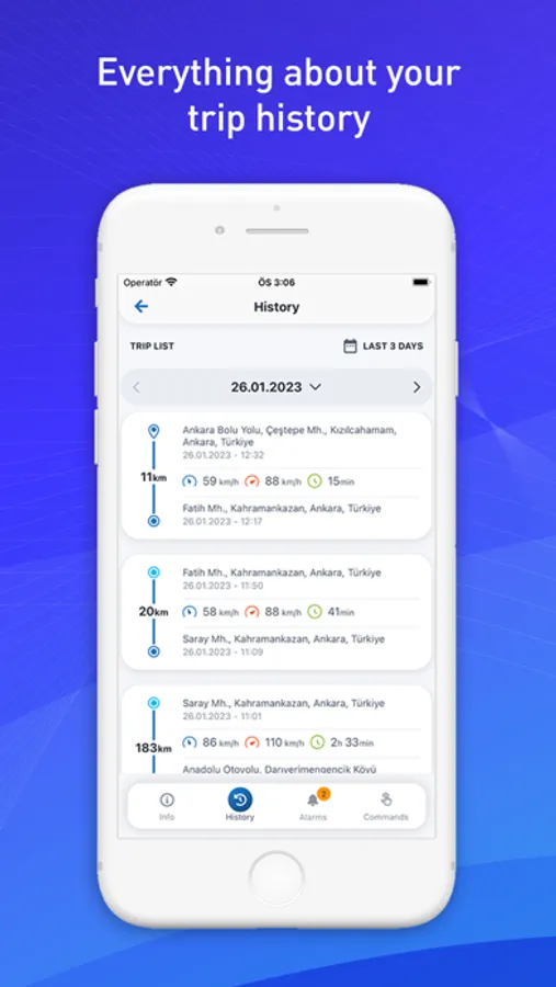 With the application, you can monitor your vehicle instantly and retrospectively, receive notifications for legal speed limit violations, save fuel, and measure and increase your efficiency with multiple different types of reports about your vehicle.