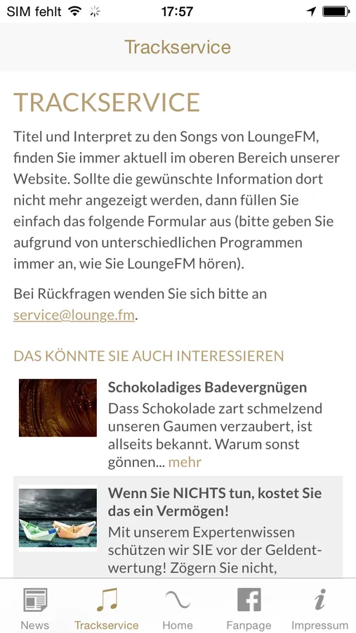 "Listen & Relax" - This is the motto and a pledge of the Austrian radio station LoungeFM to its listeners in today's stressful time. This extraordinary concept involves accompanying music lovers throughout the day, while enjoying the music and relaxing at the same time. The program focuses on smooth, relaxing and artistically precious songs and sounds ranging from Chillout, Jazz, Lounge to Electronic Music and Adult Pop. Connoisseurs and listeners of every age, who have always longed for a good feeling compilation, are targeted by this music-mix full of variety. This App brings the uniqueness of LoungeFM to your phone with one click.