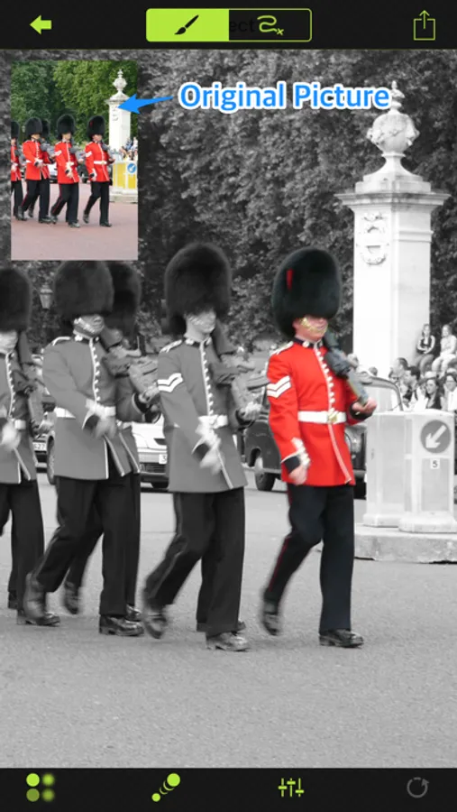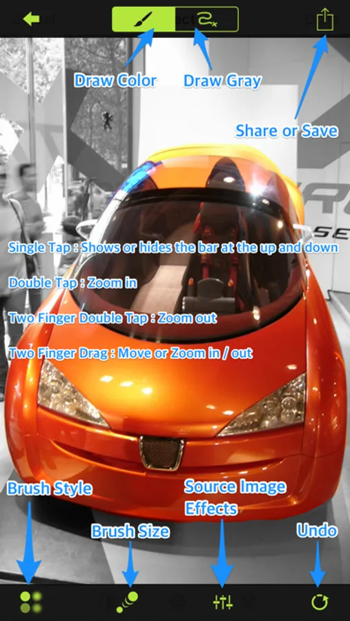 You can modify the photos in detail with zooming in/out, brush size/style functions.