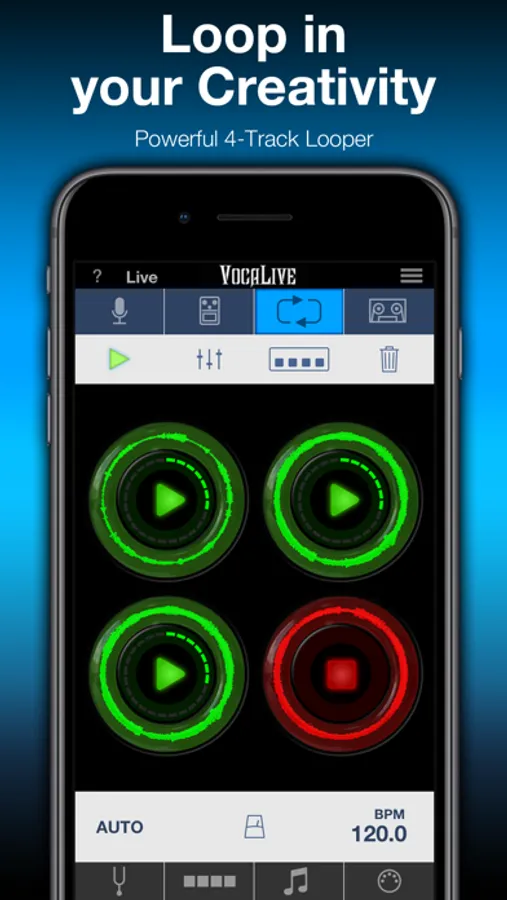 For best quality, use VocaLive with IK’s iRig Mic range of microphones, from handheld to studio condenser mic. Or connect your favorite 3rd party mic using our iRig Pre interfaces. But you can also have fun with it and record quick ideas using the built-in microphone on your iPhone or earbuds.