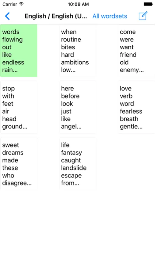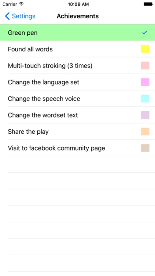 Top right button: settings for languages to play, speech voices, achievements for pen colors.