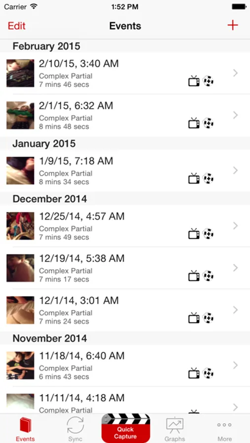 - Graph synchronized events (and surrounding information) through the integrated Seizure Tracker system