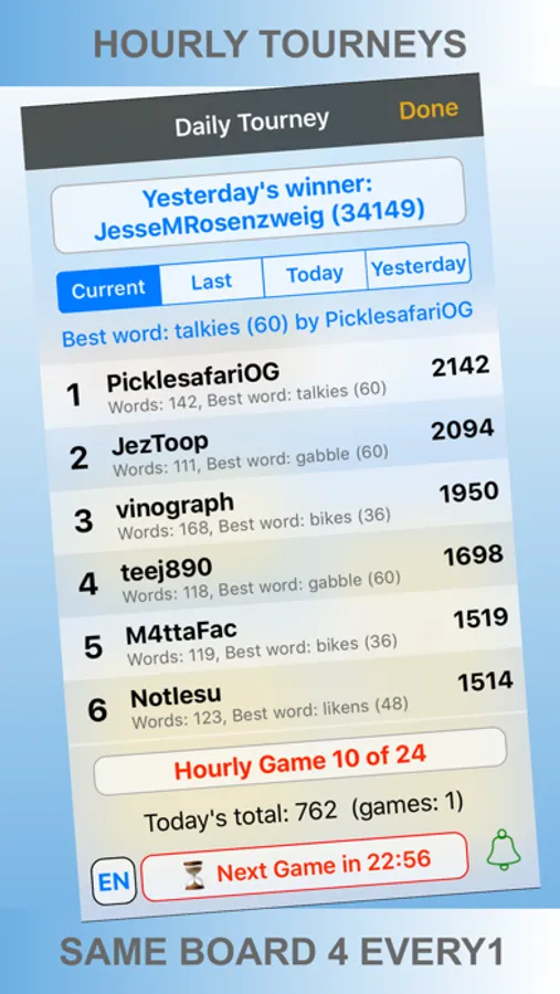 - Daily Tourney, compete with everyone on the same boards