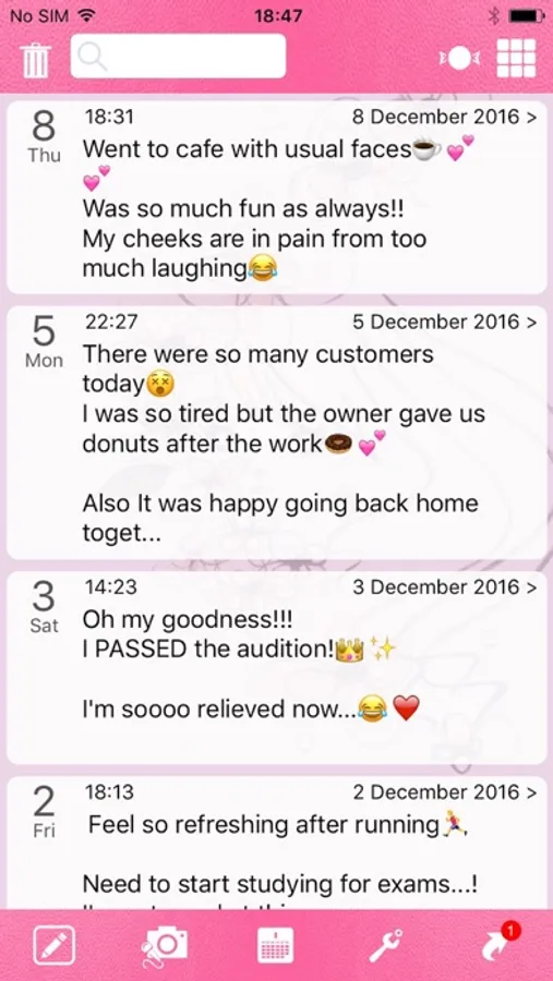 This is a private diary that makes notes with timestamps! You can take a short note and use it as a private diary, simple business note, diet record, food log, lifetime recording, cash flow record, jotting down what you watch on TV, song titles while you listen to radio...etc.