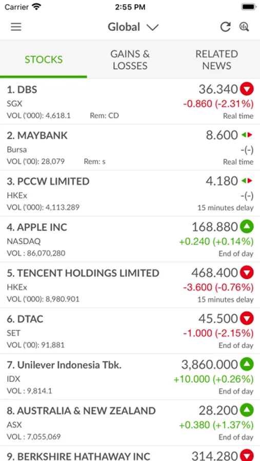 - Stay updated with the stock prices across different markets like Singapore, Malaysia, Indonesia, Thailand, Hong Kong, Australia and USA.
