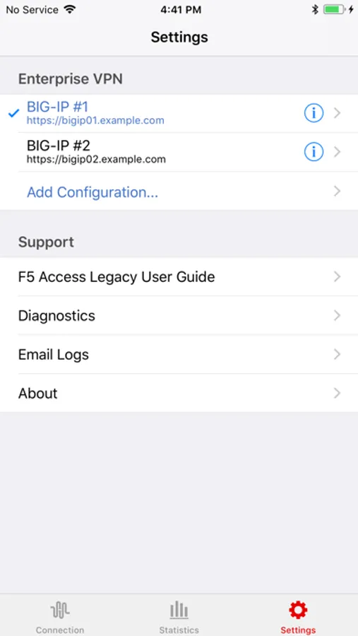 - Custom URL scheme support for creating F5 Access Client configurations.