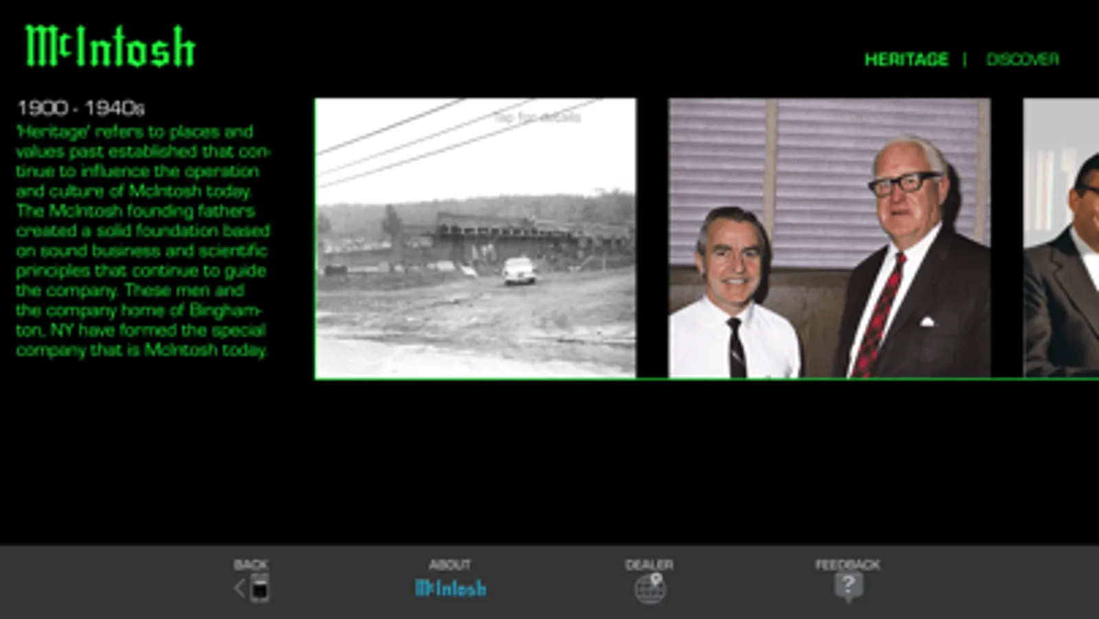 Tap the McIntosh logo at any time to access additional features including a history of McIntosh and a dealer locator so you can easily find a showroom to experience a legendary McIntosh system firsthand. Wherever you may be, you’ll enjoy the soothing confidence of the blue meters and the glow of the Legend.