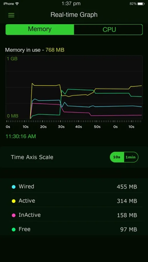 Double tap the speedometer, to see a 3D bar view of the different break up of the memory used. Like, Free, Wired, Active and Inactive memory of your iOS device.