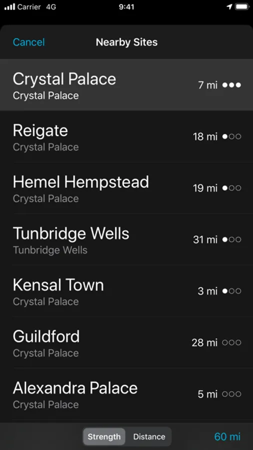 Prefer to align your TV antenna with another broadcasting site? No worries! Sites can be listed from strongest to weakest, or closest to furthest away. Pick any site from the list and Antenna Mate instantly plots a new bearing to the targeted site.