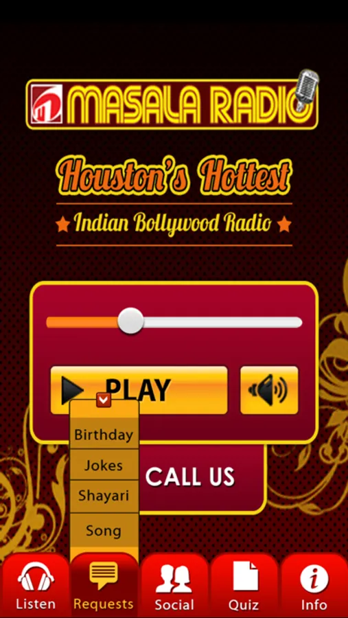 Listen to your favorite Bollywood Music with NRI Comedian Sunil Thakkar & the Crazy Masala Crew - the ultimate Indian Radio experience now available on your iPhone, iPod Touch, or iPad. Masala Radio is on live in Houston on 1320 AM Weekdays Rush Hour 5-8PM or on 1110 AM Weekends 10 AM – 5PM CST. With this Free APP you can listen in Hi-Fi Stereo in your car, home, or wherever! You can also listen to the last 6 days’ episodes with the convenient Podcast feature. And now you can call-in live, make Birthday-Song-Joke-Shayari Requests, or share with friends straight from the App. Masala Radio can also play in the background allowing you to text, email, or use other Apps.