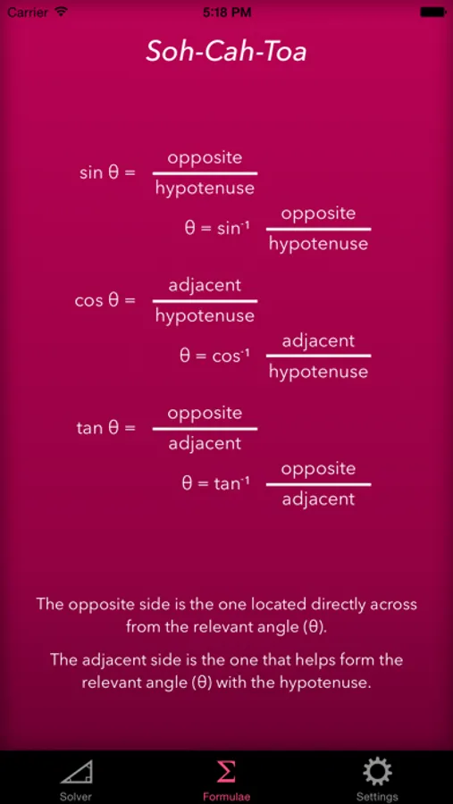 Trig Help is a simple triangle calculator that enables you to quickly and easily find unknown angles & sides of any right-angled triangle.
