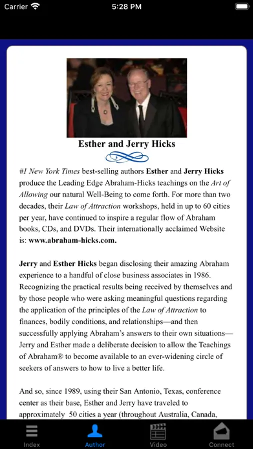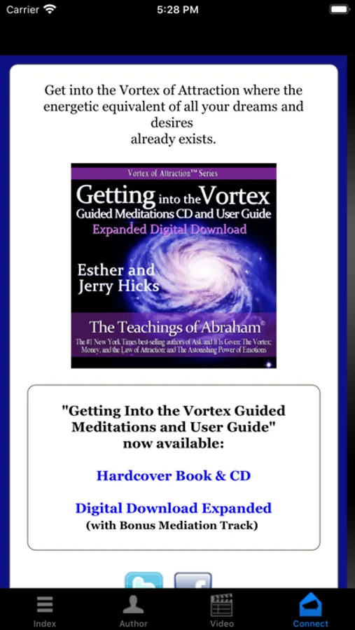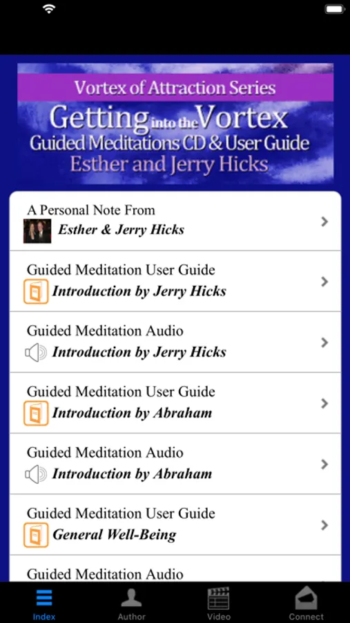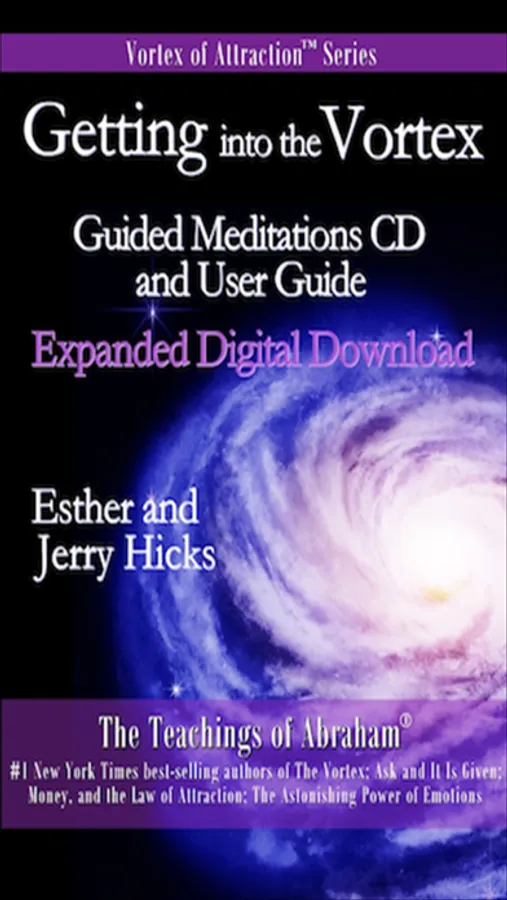 This guided meditation digital recording and book from New York Times best-selling authors Esther and Jerry Hicks explains how "getting into the vortex" is essential for manifestation using the Law of Attraction. Gain an understanding of what the "vortex of creation" means and how you can use meditation to enter the vortex in order to allow the Law of Attraction to work for you. Also gain valuable insights about what happens to your affirmations and manifestation efforts when you are out of the vortex. Five guided meditation audio sessions with music are included in this app.