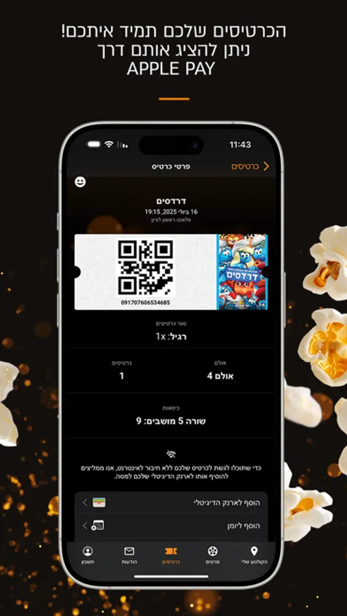 ממש קשה להתמצא באפליקציה ולקנות כרטיסים. וגם עד שקנית - כשאתה מגיע לקולנוע צריך לחפש במייל את הכרטיסים כי החברה בכניסה לא יודעים אם קנית משקפיים או לא. אפליקציית לרכישת כרטיסי קולנוע, היית מצפה ש... תראה את הכרטיס בצורה נוחה.