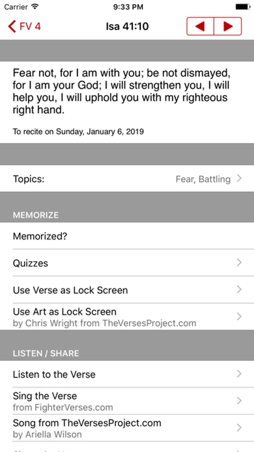 — Recite Aloud Quiz - allows you to record yourself reciting the verse and then compare it with the text