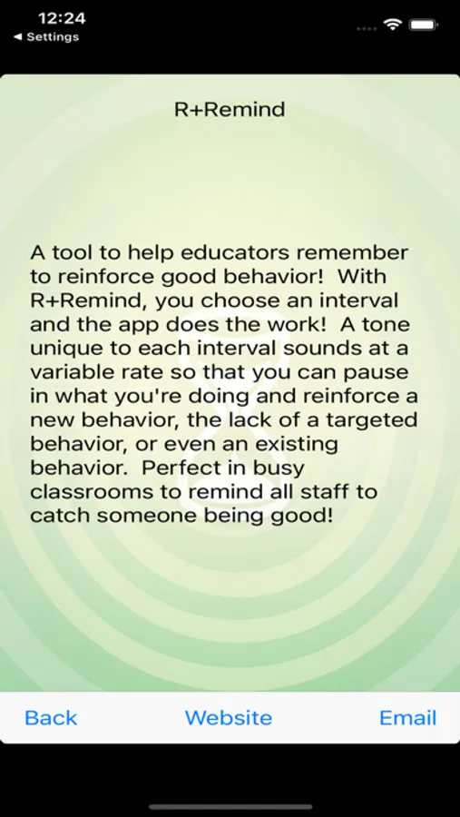 A tool to help educators remember to reinforce good behavior!  With R+Remind, you choose an interval and the app does the work!  A tone unique to each interval sounds at a variable rate so that you can pause in what you're doing and reinforce a new behavior, the lack of a targeted behavior, or even an existing behavior.  Perfect in busy classrooms to remind all staff to catch someone being good!