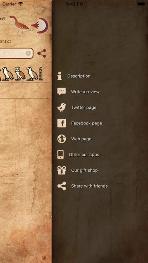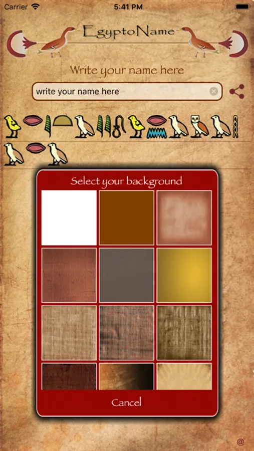EgyptoName translate your name and create a beautiful page using the Ancient Egyptian Hieroglyphics.