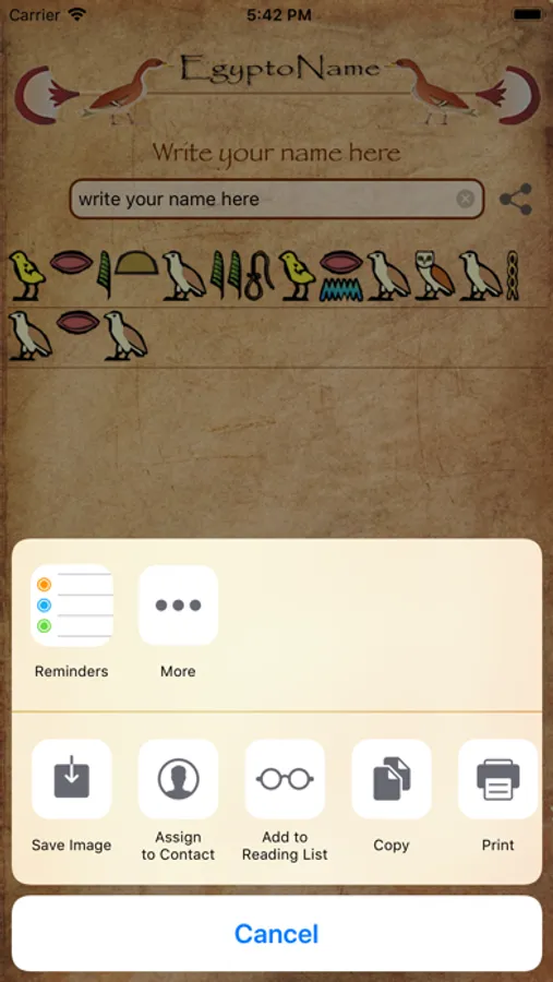 Have your name written in Ancient Egyptian Hieroglyphics.
