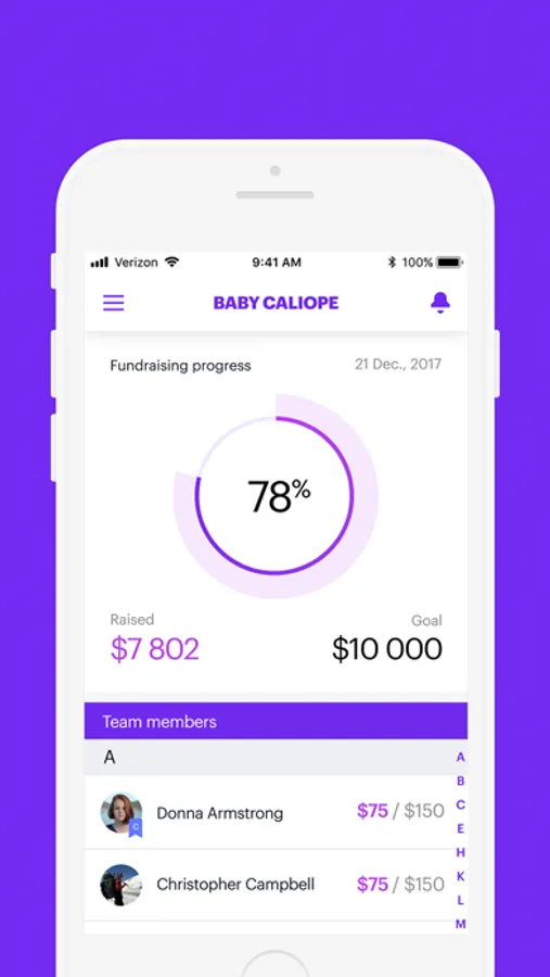 The March for Babies App instantly communicates with your March for Babies account. Changes you make in the App will be reflected on your March for Babies fundraising page and vice versa.