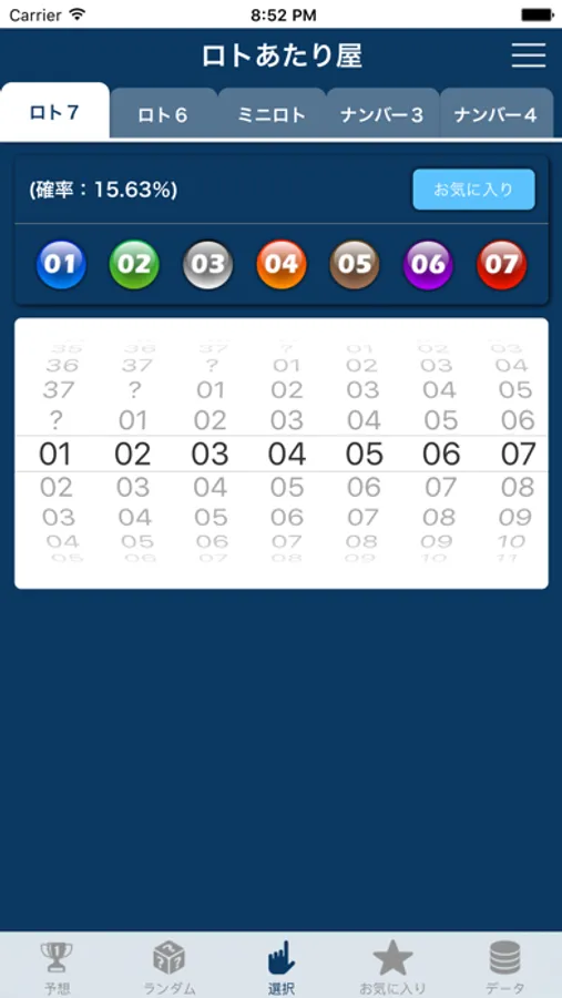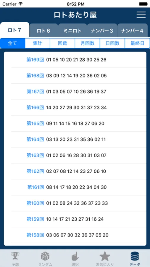 簡単なロト、ナンバーズ集計、予想アプリです。