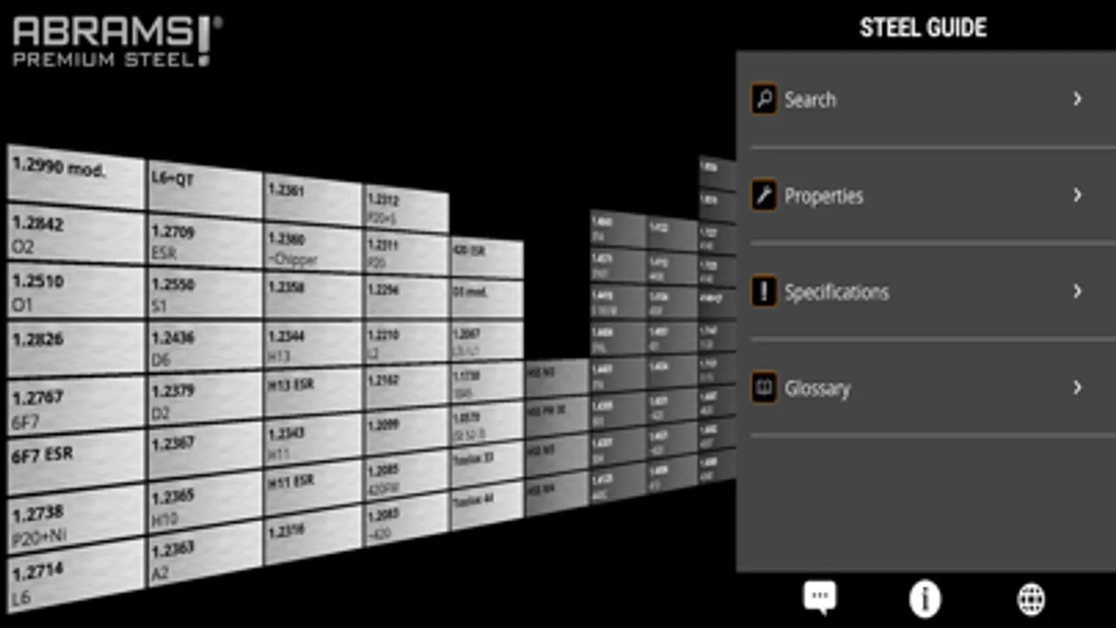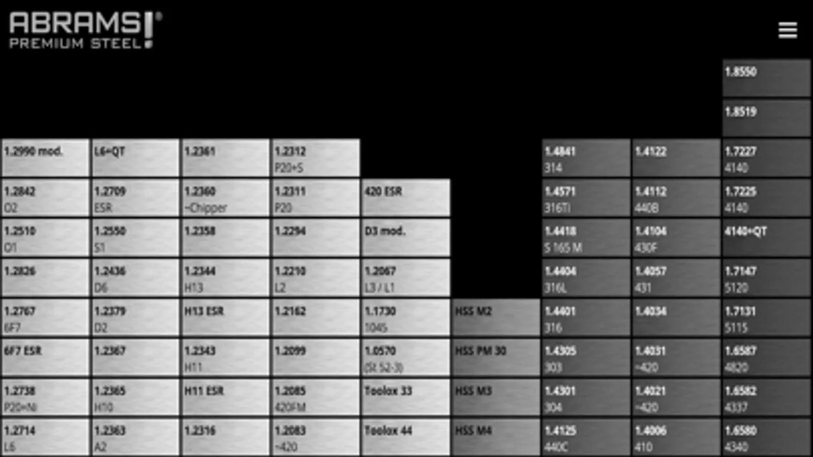 The ABRAMS STEEL GUIDE® is an interactive application which helps one to choose the perfect steel grade in the industrial sector. This application is exceptionally helpful for designers and engineers of tools, mould making, machine construction or jig manufacturing.