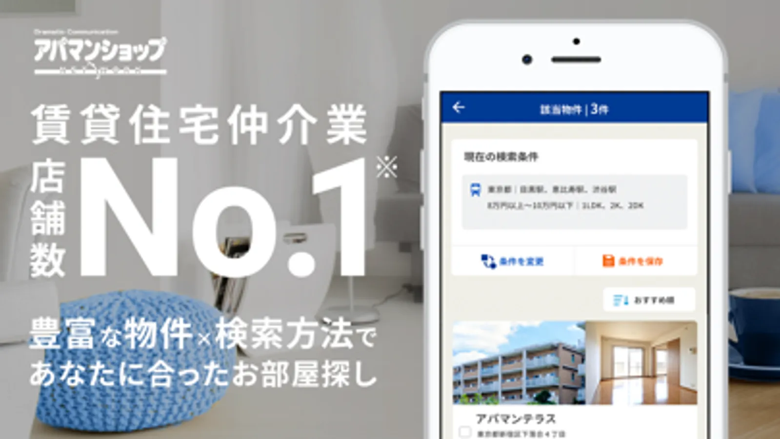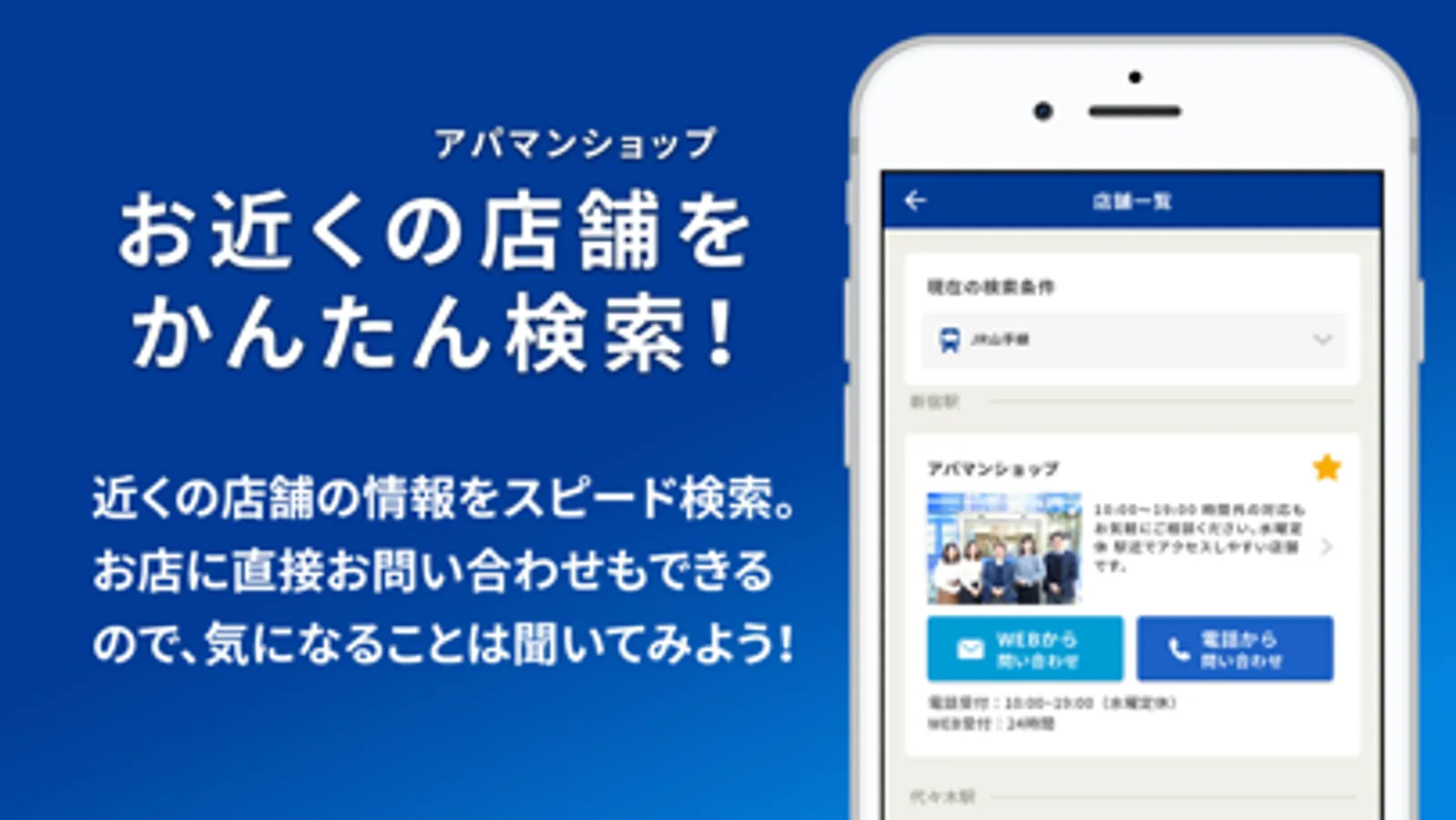 賃貸住宅仲介業店舗数No.1*なので、賃貸物件を検索後の相談・内見もラクラク! アパマンショップ公式アプリを使って理想のお部屋や物件が検索して見つけて下さい!