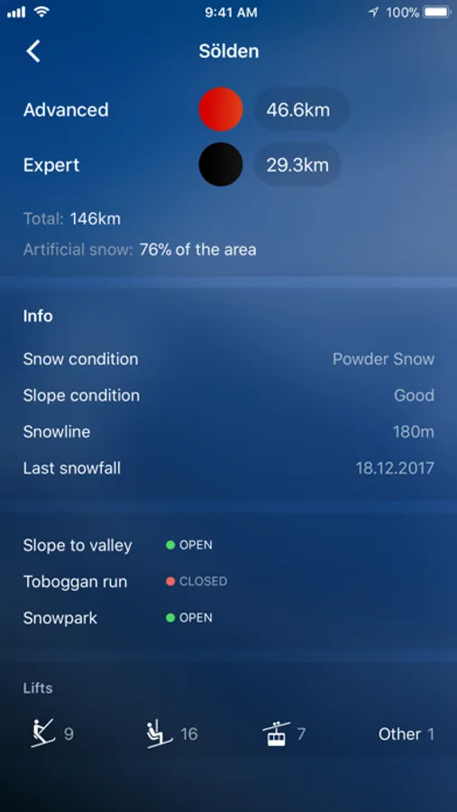 Features like snow alter and facts about snow reports, prepared slopes, weather forecasts and information about lift passes makes the app a must have for all skier.