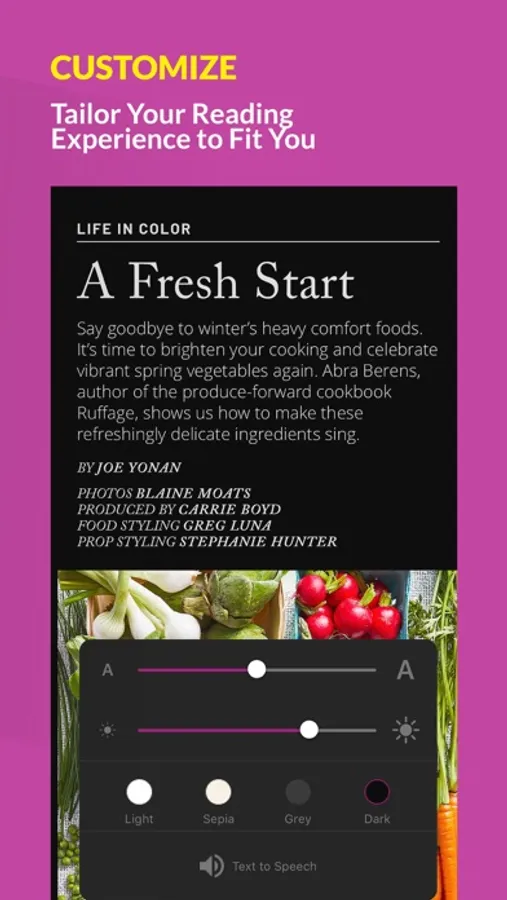 • OPTIMIZED FOR YOUR DEVICE: Easily toggle between the traditional magazine layout and the innovative text mode for a seamless reading experience, built for your iOS device